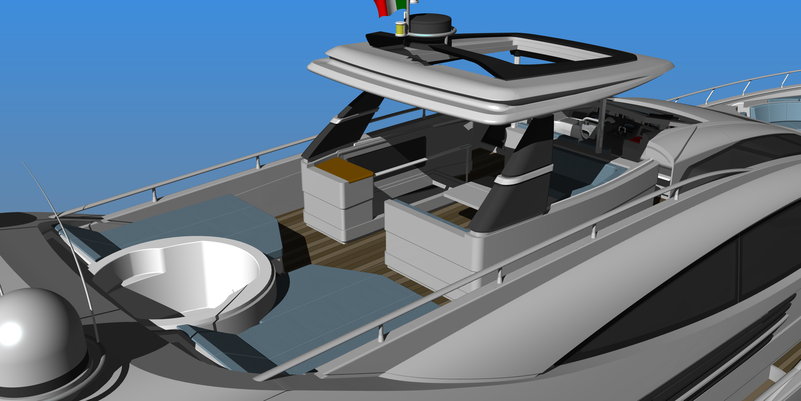 While this yacht’s outer lines are the same of her sister’s – launched last August and successfully presented at Cannes Boat Show – the concept of this new version is extremely innovative and takes to extremes the “FlyingSport” philosophy thanks to the owner’s true ingenuity and its flawless interpretation by the creativity of the Cerri team.