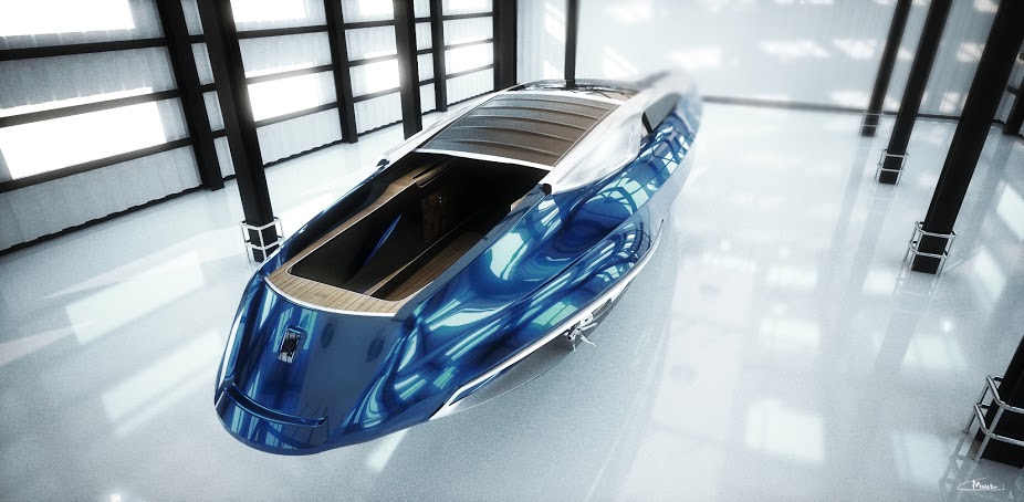 “After completing an internship at Rolls-Royce Motor Cars, I wanted to use the company’s brand to evidence the potential and allure this well established and unique automotive brand, already synonymous with luxury in its own sector, could bring to the yacht industry. I made it a priority to avoid a literal translation of car features into a marine environment as previous automotive styled yachts have often appeared forced, simply transposing car features onto an existing hull. Instead I wanted to take the design DNA and key principles of the Rolls-Royce brand and apply these gracefully to a marine product that projects a confident aesthetic in the surrounding environment. “ states Stefan Monro