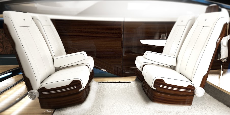 Flying buttresses equate to the large C pillar of the car, maintaining client privacy while allowing light into the interior of the vessel. Bespoke interior options and styles are available as well as a full luggage set to enhance bespoke content for potential clients.