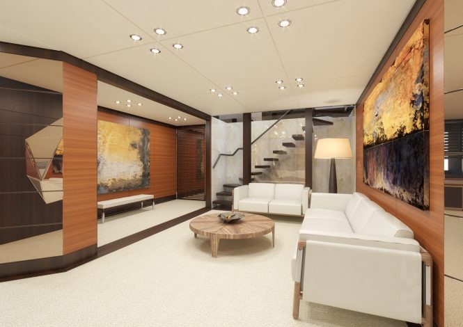 For the interiors Spadolini has designed a concept that is ‘contemporary and comfortable, but not lavish’, however, as a superyacht with full customisation options, owners can bring aboard their own interior designers to add their personal touch.
