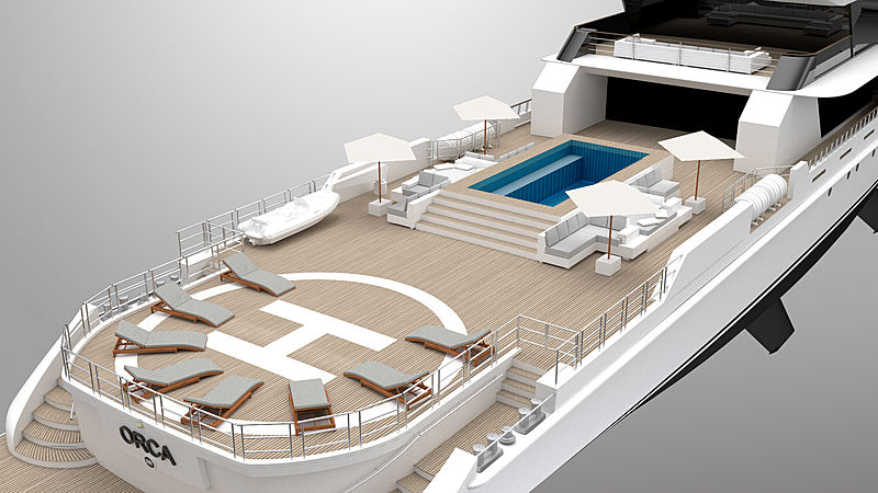 The vessel was designed in collaboration with Meccano Engineering who developed the exterior profile, naval architecture and engineering. With a beam of 12 metres, PROJECT ORCA has a gross tonnage of 1,300 GT.