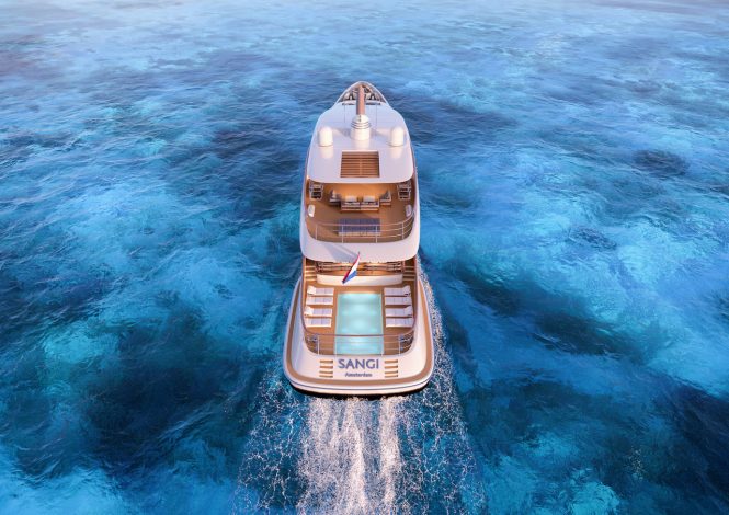 M/Y SANGI, which means ‘change’ in Esperanto, is a semi-custom all-aluminium vessel designed by Cor D. Rover with naval architecture from Van Oossanen Naval Architects capable of accommodating up to 12 guests and 12 crew, and is offered to the market as a contemporary alternative to traditional luxury yachting experiences.