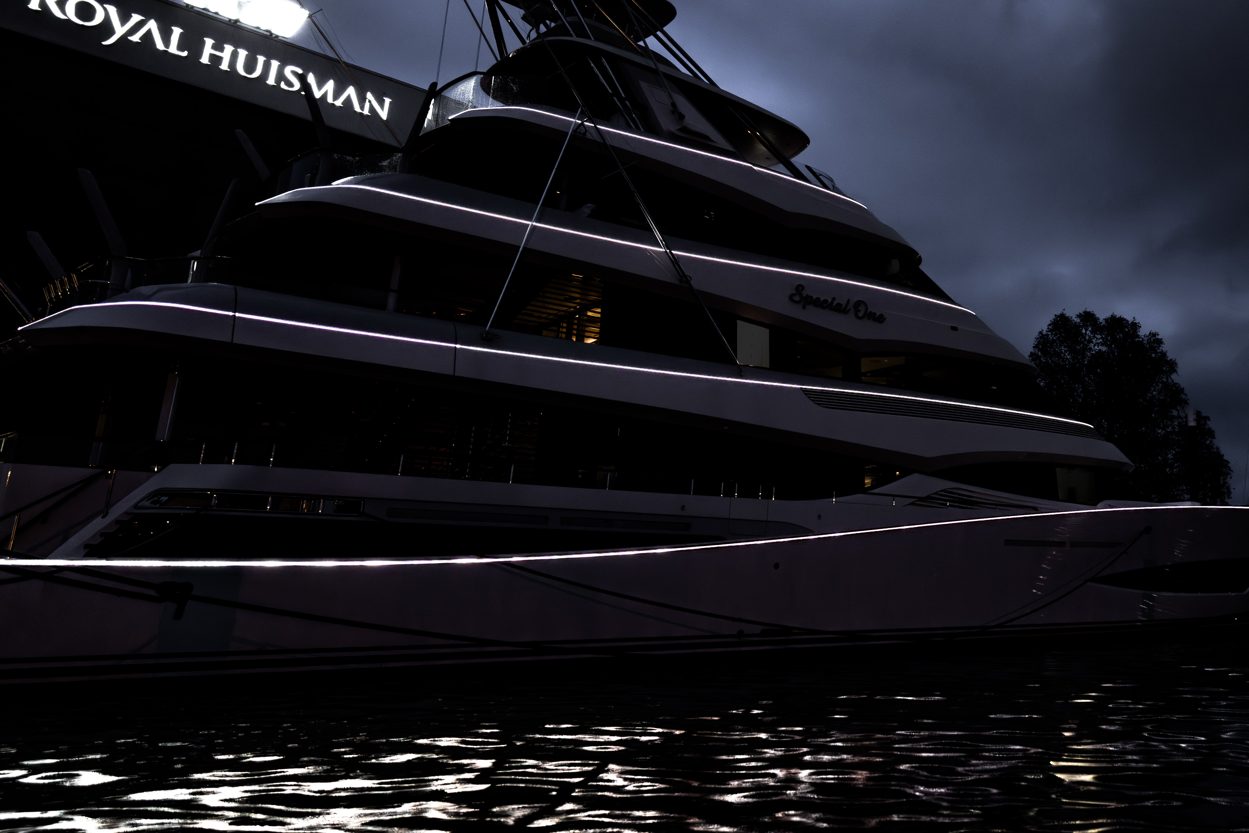 Groundbreaking 52m (171ft) big fisher motor yacht PROJECT 402 from Royal Huisman has been christened SPECIAL ONE ahead of her sea trials in the North Sea. Six decks create a towering profile and maker her the largest and most luxurious true sportfish yacht in the world.