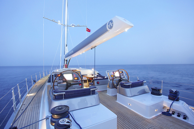 At 24m the Aiyana sailing yacht has a careful use of space and has the feeling of a much larger vessel not to mention wide side decks with storage lockers, cockpits and aft deck.