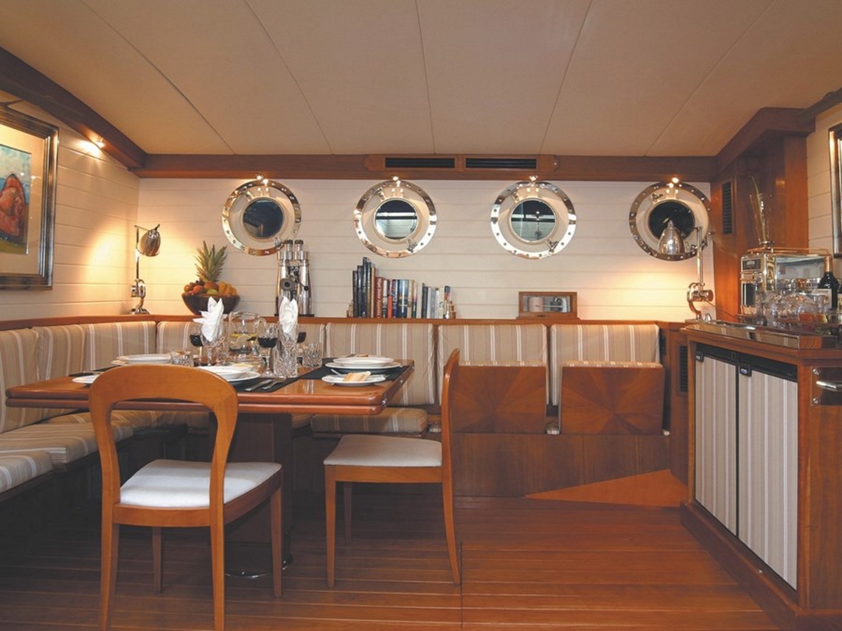 The accommodation layout sleeps 6-8 guests over 4 cabins: 1 Master suite and 3 double cabins, all of which have en-suite facilities. The expert crew of 5 will ensure that everyone on board receives excellent service throughout the charter.