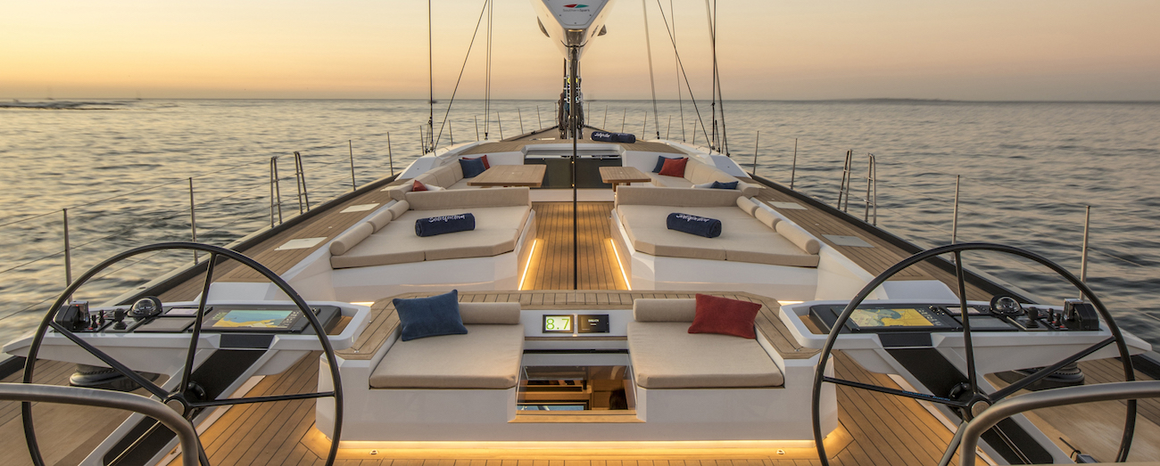 “SATISFACTION is a perfectly balanced and powerful sailing yacht that performs very well in light air,” commented Southern Wind General Manager Marco Aberti. “Thanks to her twin rudder configuration, she is very light on the helm in any condition. The wide deck with the cockpits on the same level gives a real superyacht feeling.”