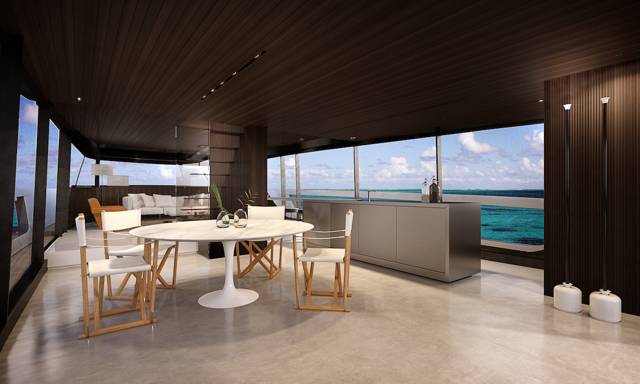 SX88 features a GRP hull and a carbon fibre superstructure. Her interior design was created by Piero Lissoni, who also worked on the SX range models. As for interior decor, it can be customised according to a buyer’s preference. The exterior profile of SX88 is by Officina Italiana Design.