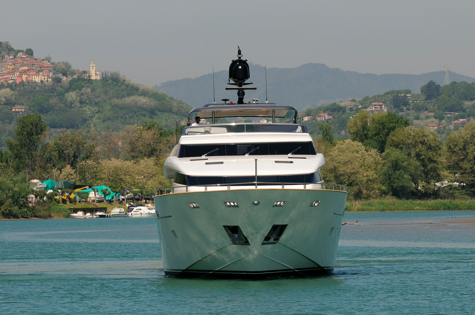 Motor Yacht REGINE is the 15th SL108 yacht model launched (33 metres long and 7,40 metres large) flagship of fiberglass line of motoryacht with planing hull built in the Ameglia Division of Sanlorenzo. REGINE superyacht is the result of the choices and the personal taste of her owner, who selected for the walls and for the furniture white lined teak and for the floors a rare lined teak with wengè inlays. The mastercabin bathroom is characterised by precious limestone. REGINE yacht is equipped with two MTU engines of 2600 Horse Power, that guarantee a maximum speed of 30 knots and a cruising speed of 26 knots.
