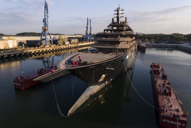 There are 56 crew cabins altogether, and this expedition yacht can sleep 28 guests in 18 en-suite cabins for extensive travels for research and adventure the world over. On completion of her sea trials she will cruise south to Germany to complete her refit at the Lloyd Werft shipyard. Once she is launched, she will become the world’s largest yacht at 182.9m/600ft. Mega yacht REV OCEAN will be available for charter following delivery to her Owner in 2021.