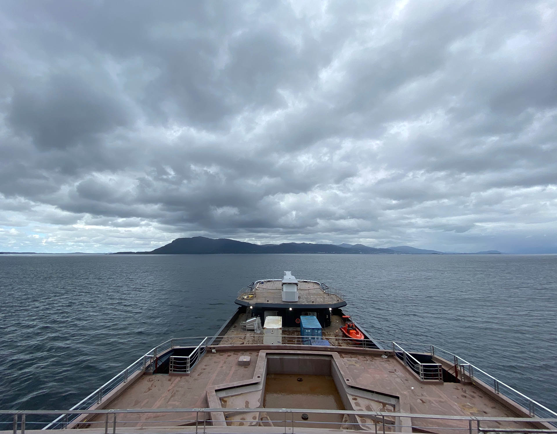In February it was announced that the first cabin, ‘Cabin 3245’ had been completed on board. This cabin has been designed for use by scientists and crew, with a king-single bed, a desk, sofa and widescreen TV in addition to ample storage. At this time positions were advertised for 18 crew for her sea trials, with 40 more crew positions to be filled for full operation.