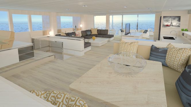 Similar li-ion batteries as those used in Tesla cars ensure efficient energy storage, resulting in no generator required for air conditioning and cooking at anchor.