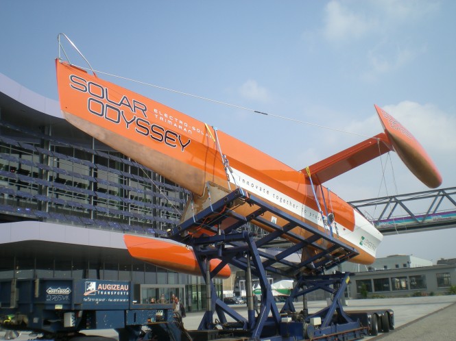 Solar Odyssey yacht is an experimental platform developed as a first boat propelled only by solar energy to beat the Atlantic record and the first to achieve a world tour without any CO2 emission. This exciting trimaran is being exhibited at the La Grand Pavois 2010 show in La Rochelle.
