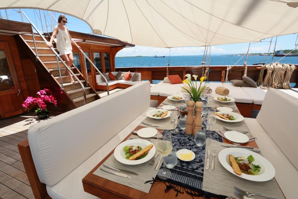 A MAN engine with 1000hp powers the Haji Baso yacht with cruising speeds of 8 knots and top speeds of 12 knots.