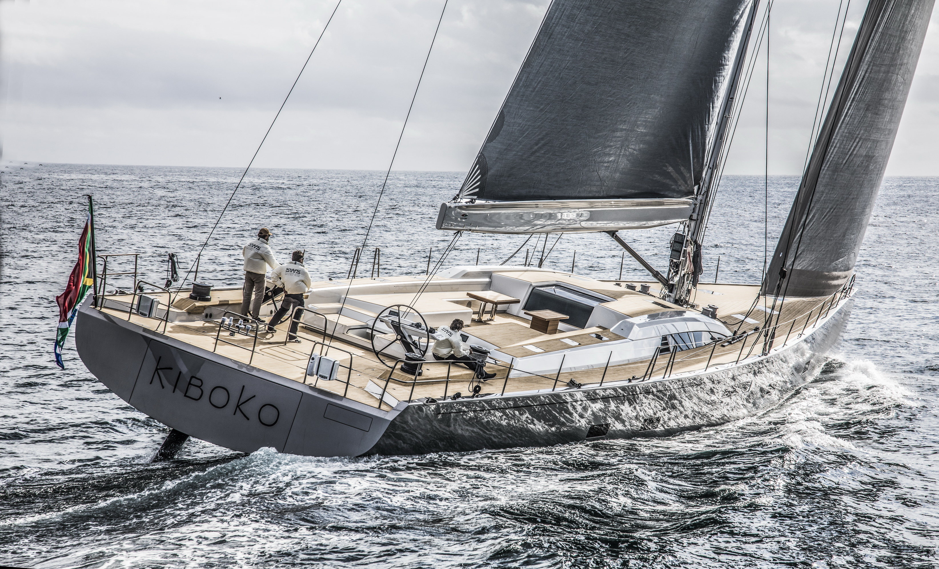 KIBOKO TRES was constructed for a repeat Southern Wind owner, for whom this yacht is the third from SWS. “I was looking for a high-performance yacht to race within the Superyacht regattas on the world circuit, at the same time looking for a place to spend precious time with my large family and completely disconnect from our daily commitments”. Explains the Owner with a huge smile while taking to helm in Cape Town for the first time aboard Kiboko Tres.