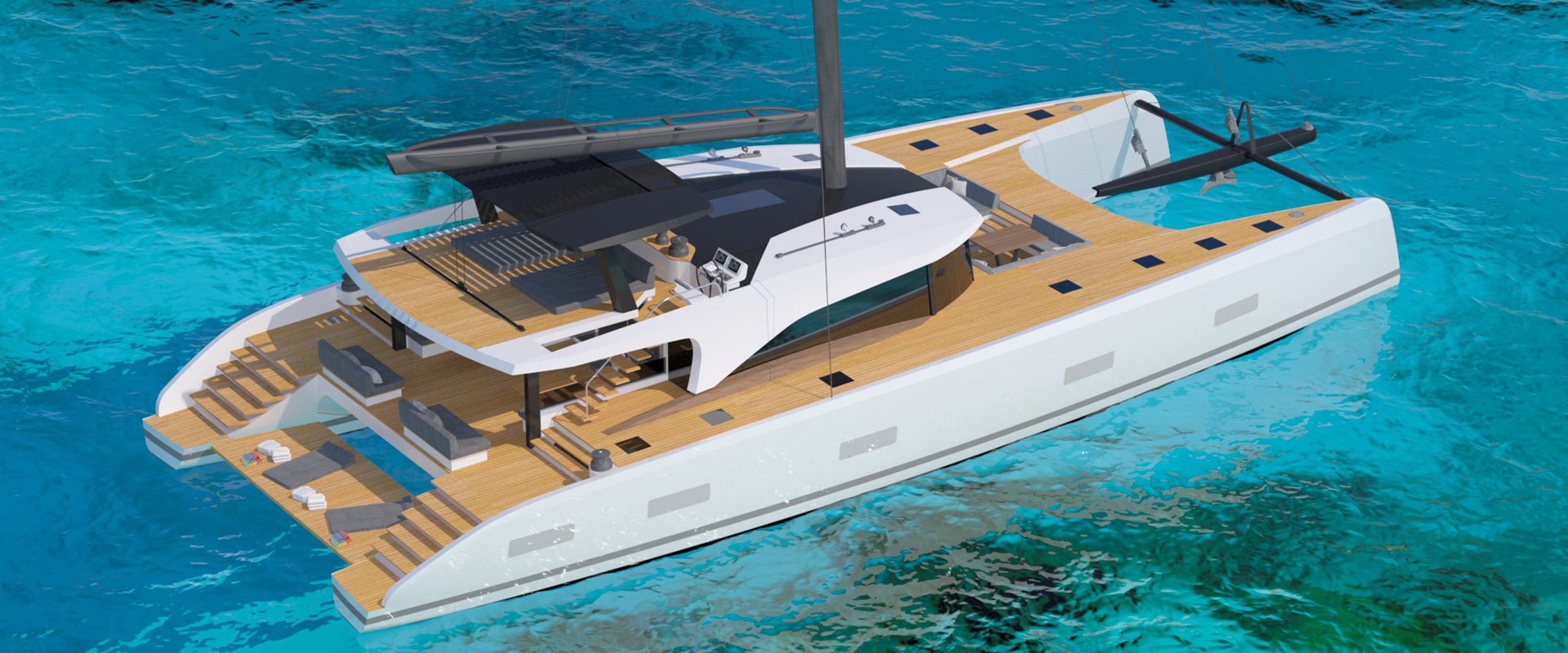 The SWCAT90 has been developed to provide each Owner with a highly versatile platform that can prioritise performance, eco-friendly sustainability or onboard luxury. The interiors provide 171m2 of interior floor space that includes a salon of 45m2 with 360-degree views. The deck space includes two cockpits and a flybridge of a combined 207m2 – a 50% increase from a monohull of similar size.