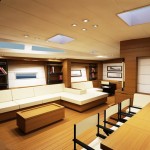 The superyachts weight has been kept to an absolute minimum by using a carbon sandwich hull and infusion technique. The internal furnishings will also be made of carbon with a nomex core.