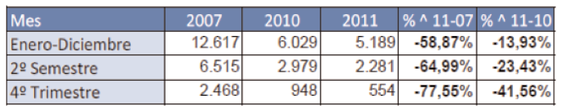 The report also details the number of registrations of recreational crafts over recent years. Comparisons of registrations of 2011 with 2007, (the year preceding the beginning of the recession), show a dramatic 58.87% decrease. The reduction of 77.55% in the 4th quarter is particularly striking. The conclusion is that the Spanish nautical industry is in clear recession, and to a much greater degree than other countries around us.