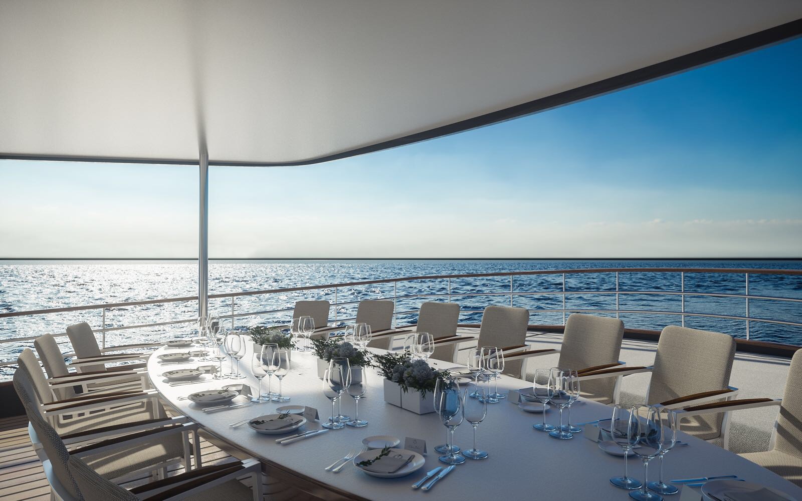 S/Y CORSARIO has 2 levels of exterior living, comprising the main aft deck with partial shade and dining, a spacious foredeck, and a not-to-be-missed sundeck, offering numerous chaise loungers, in the internal sauna room and a deluxe jacuzzi.