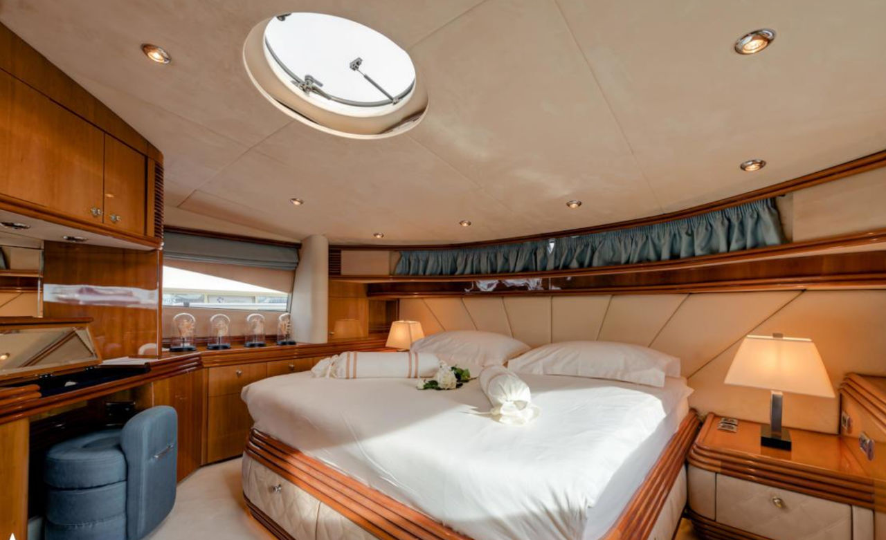 While there is room onboard for up to 12 guests while cruising, the overnight accommodation sleeps a total of 8 guests across 4 en-suite cabins: 1 Master suite, 1 VIP stateroom and 2 twin cabins, both of which can convert into doubles. There is a professional crew of 5 to ensure that all guests have everything they desire throughout the cruise.