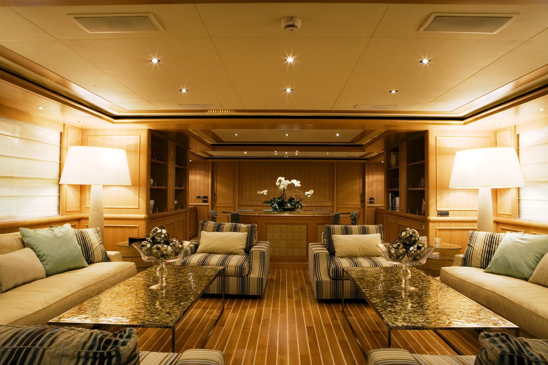The accommodation is designed to sleep up to 10 guests over 5 cabins: 1 Master suite, 3 double cabins and 1 twin cabin. A professional crew of 9 will ensure that every guest is taken care of throughout the charter.