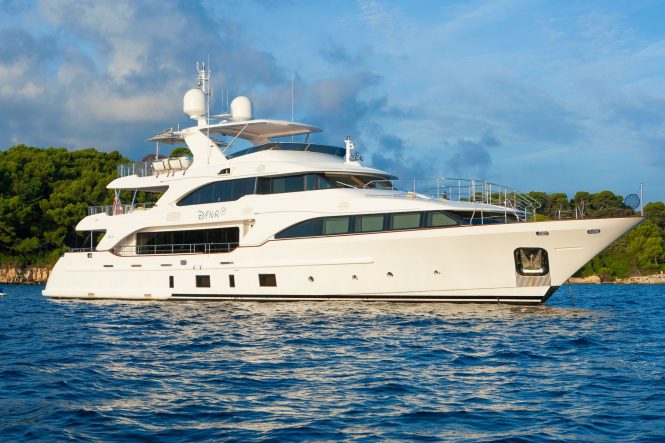 Superyacht DYNAr is available for charter in the Western Mediterranean from €115,000 per week plus expenses, and during May, June and September she is offering 8 days for the price of 7. This popular charter yacht is sure to book up fats – secure your preferred dates and location today.