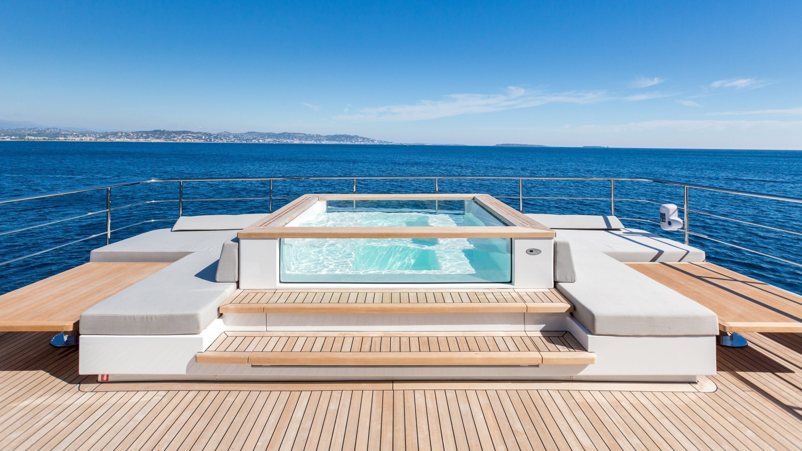 The spectacular sundeck will be a hit with everyone on board, offering a forward Jacuzzi in the sunshine and surrounding sunpads, while the aft has a hardtop cover for shaded alfresco dining with drinks from the bar.