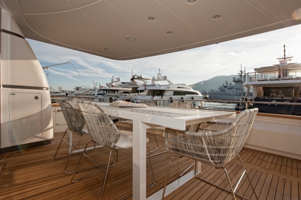 On the flybridge, guests can get a closer experience of the location while conversing in the sunshine at the alfresco lounge.