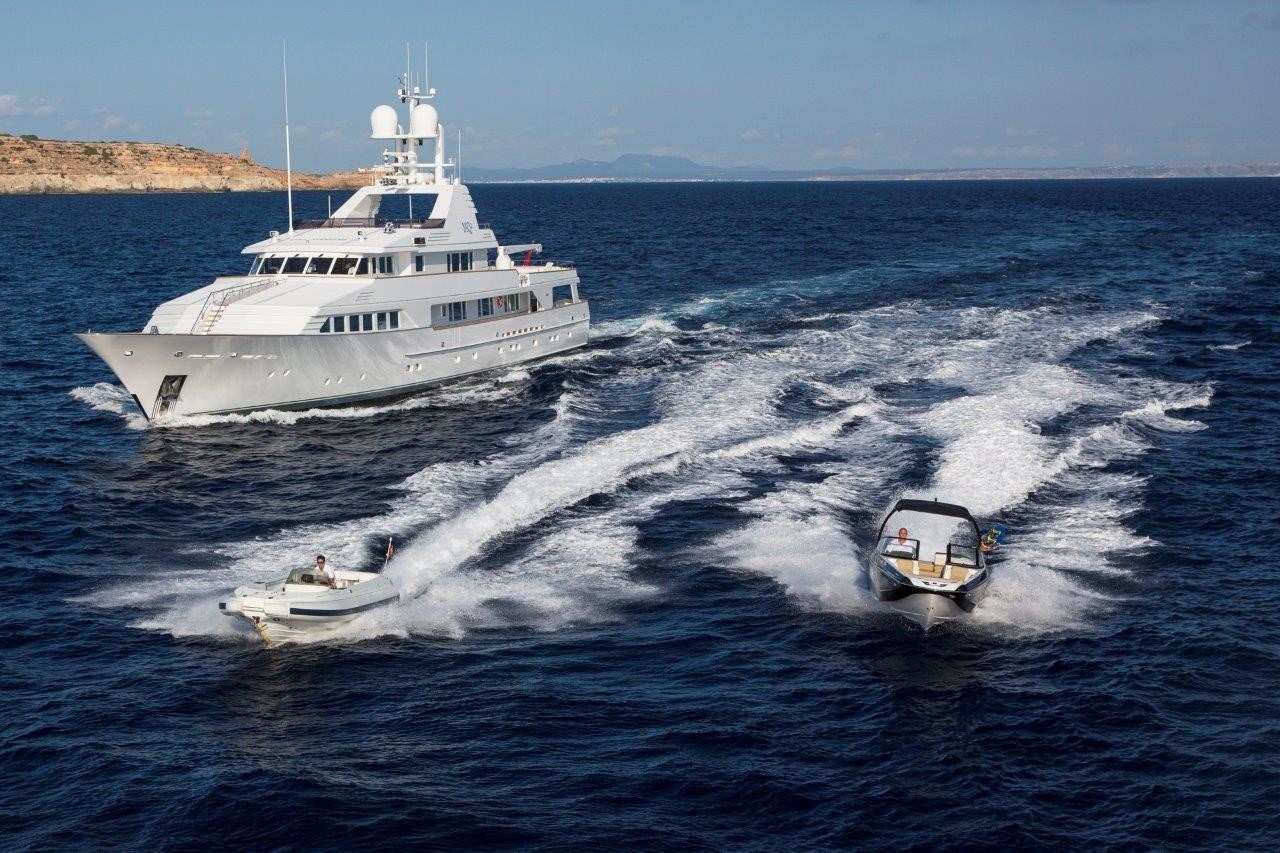 The Feadship yacht achieves 11 – 14 knots, powered by twin CAT 850hp engines. She is fitted with zero speed stabilizers which assist to reduce motion.