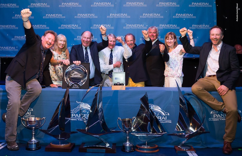 But the loudest cheer of the night was saved for the presentation of the British Classic Yacht Club Racing Trophy and a Panerai Watch to the overall winner of Panerai British Classic Week, which this year goes to Murdoch McKillop’s stunning 1931 William Fife classic 8 Metre Saskia. On accepting his prize Murdoch McKillop spoke on behalf of the competitors to thank the organisers of the event, the race officers, Panerai, EFG International and the other sponsors, and the weather gods for making this such a fantastic week. He concluded saying, “I’d like to thank everybody involved in Project Saskia. From Scott Comben who has put it all together, to Gilmour [Manuel] who was the helmsman, who was very disappointed not to win the youngest person in the regatta prize, and to everybody who made it possible. And we really are delighted that we’ve managed to bring a truly classic Scottish yacht back into full fettle, so thank you very much everybody.”