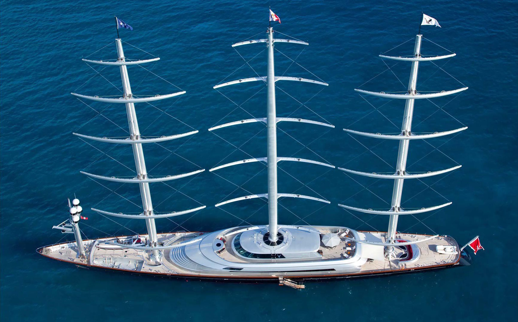 Although she does not have time to sail aboard her often, luxury yacht MALTESE FALCON has proven popular on the charter market as many others also fall in love with her elegant appearance and instantly recognisable three-mast DynaRig system, developed by Dykstra Naval Architects.