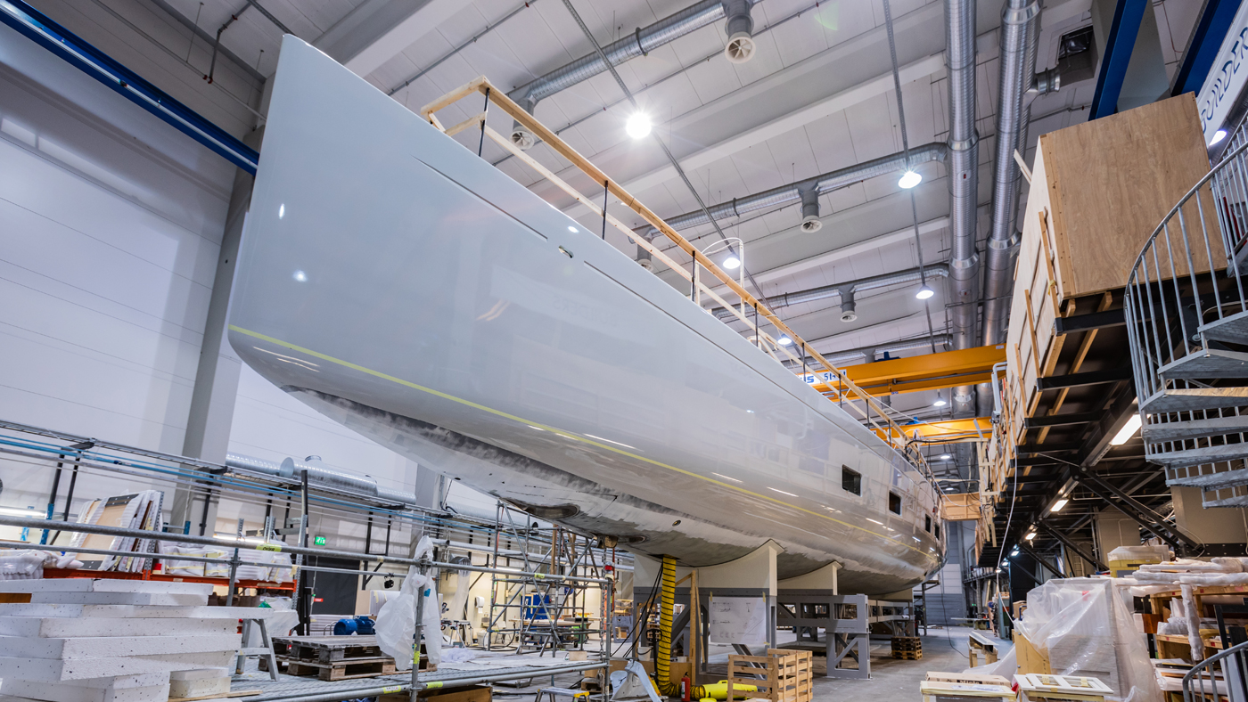 43.3m/142ft luxury foiling yacht CANOVA, part of the BALTIC 142 series from Baltic Yachts, is preparing for launch at the shipyard facilities in Finland. More images have been released to showcase the incredible sailing yacht: