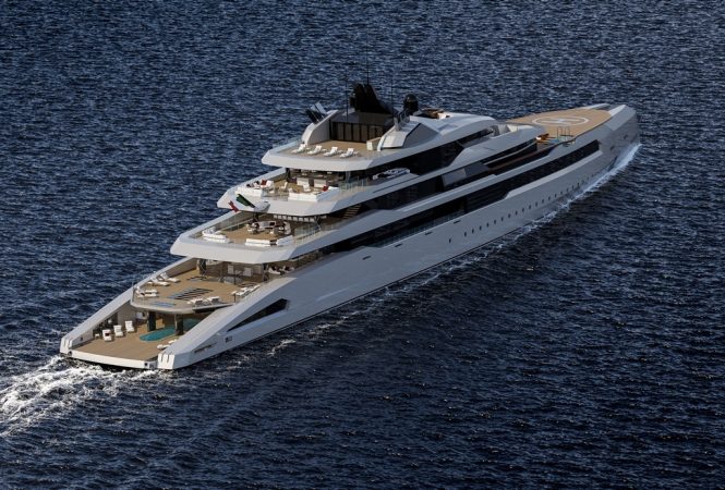 The 92m/302ft concept will also have a wealth of facilities, including a helipad on the foredeck, a Jacuzzi and a spa pool, and there will be enough accommodation for up to 36 guests.