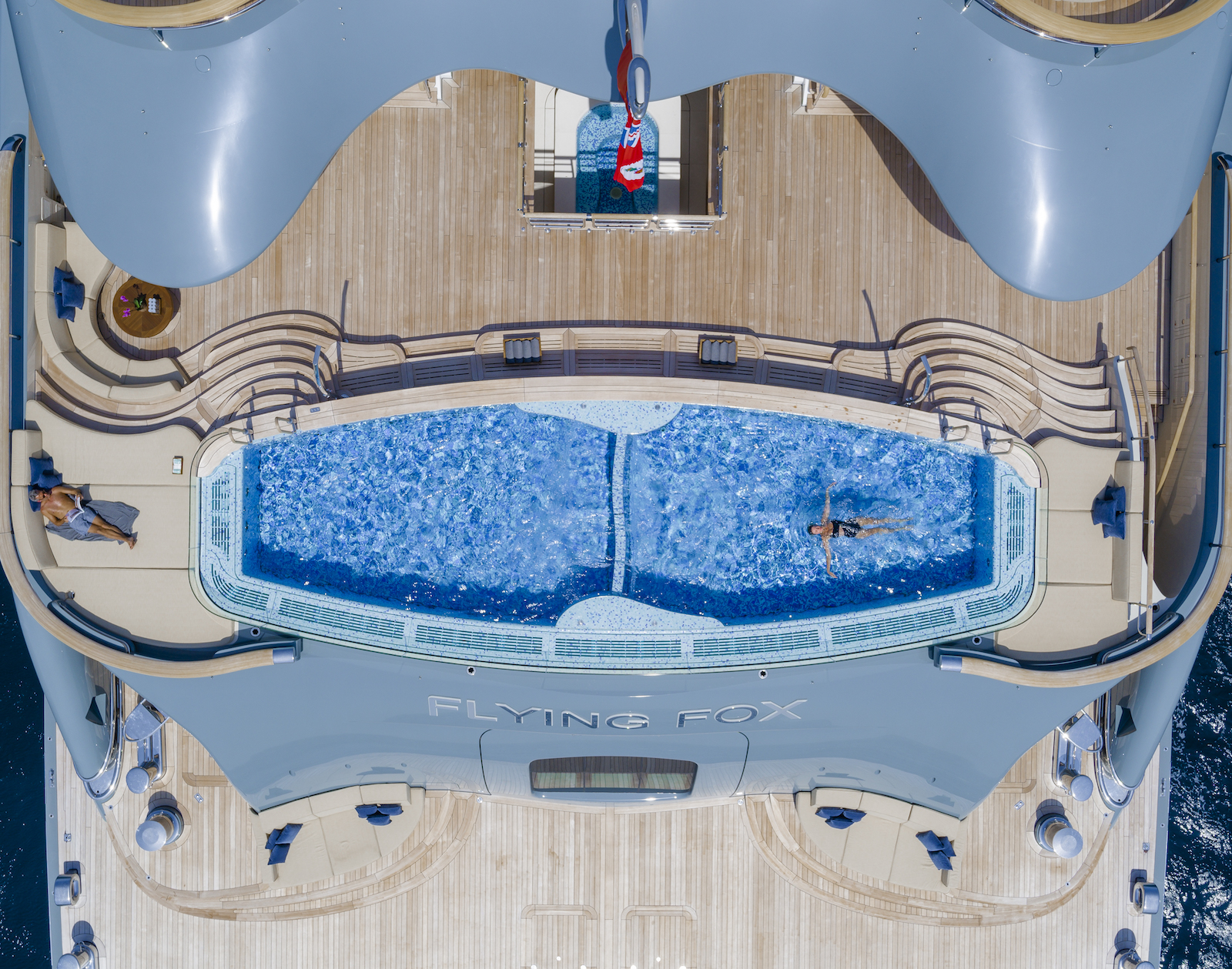 You might be wondering: How big is the FLYING FOX yacht? Megayacht FLYING FOX covers six decks inside and out, the beam being 22.5m/73.10ft at her widest point, with a Gross tonnage of 9,022.