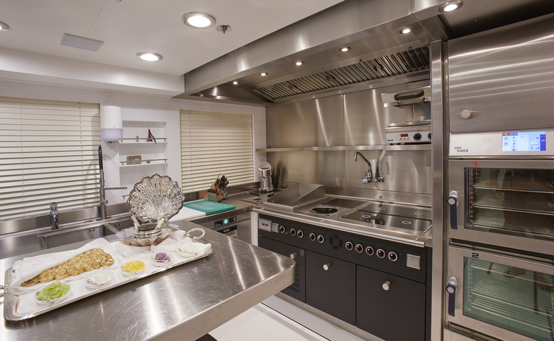 The Limited Editions approach gave the Owners ample options for customising layouts. The Owners moved the galley to Main Deck right next to the dining area, ensuring fine cuisine is central to the yachting experience.