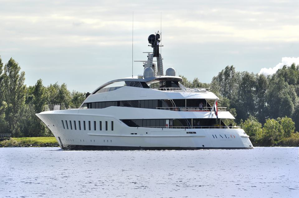 Feadship Fanclub has released the beautiful photos below of the striking Feadship super yacht HALO (hull 810), taken by Jan Ramaker. Measuring 57 meters in length over all, luxury motor yacht HALO was captured underway on the North Sea Channel on Monday, September 28, 2015.