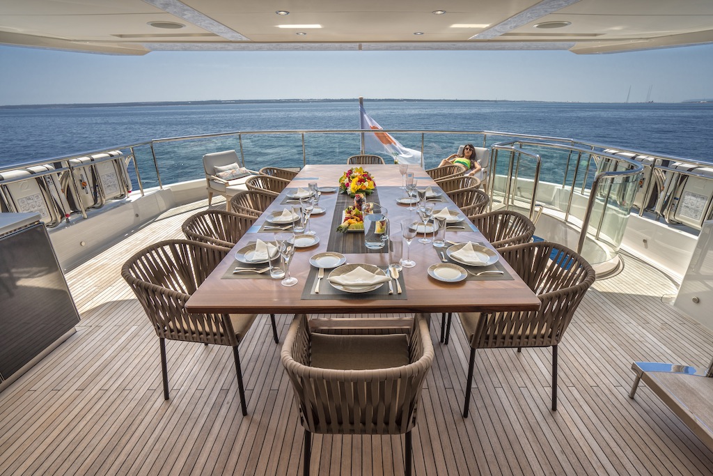 Upper deck aft alfresco dining aboard M/Y ANKA