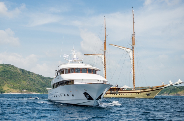 The second day marked the beginning of the excitement regatta featuring an eclectic fleet of outstanding sailing yachts: S/Y LAMIMA, S/Y LADY THURAYA, M/Y VIE SAN SOUCIS, M/Y ANTARES, M/Y AFTER 8 and S/Y BLISS cruising through the Andaman Sea.