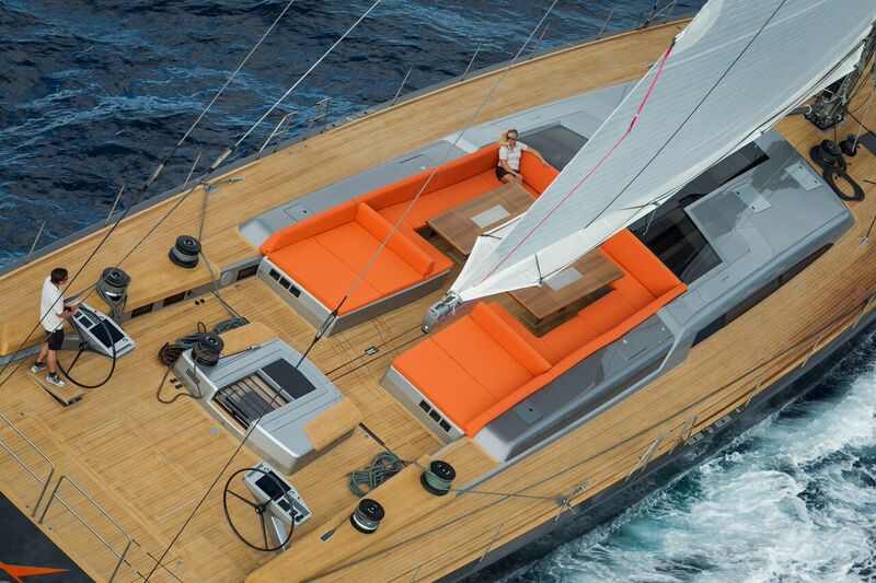 Well equipped for inshore racing as well as offshore events, NIKATA also has the ability to switch from a cruising style ‘pin-head’ mainsail to a powerful ‘square top’ for more competitive sailing. A key feature on deck is the ingenious fold-out stern platform, designed by Nauta Design, engineered and built by Baltic, providing a swimming and boarding area plus a wide set of steps enabling guests to reach the main deck and large cockpit with ease. In the stowed position the teak laid platform becomes the aft deck.