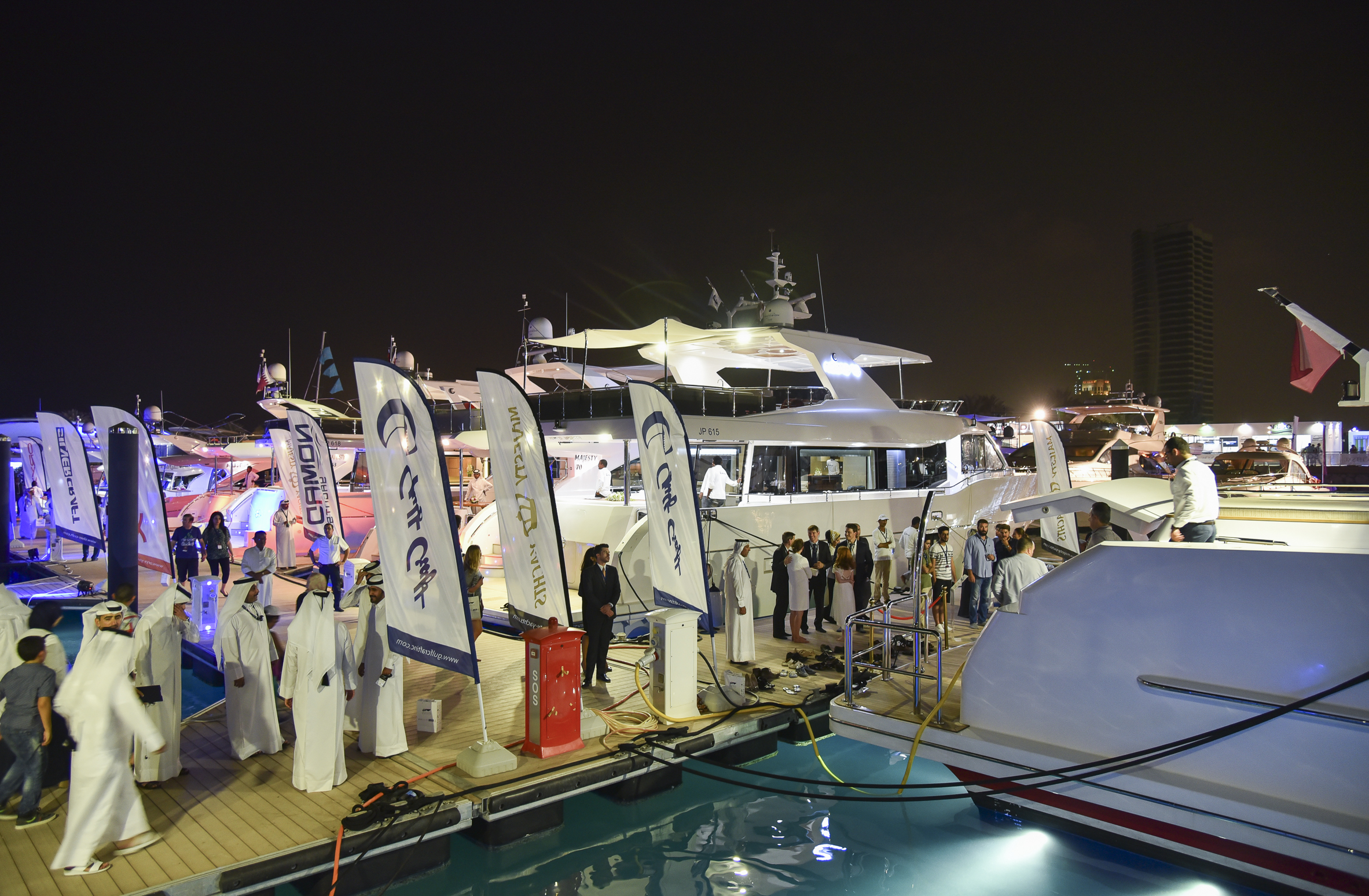 Last week’s 3rd edition of the Qatar International Boat Show was a huge success for the premier Middle Eastern superyacht builder, Gulf Craft. This year’s show was inaugurated by the HE Sheikh Ahmed bin Jassim bin Mohamed Al-Thani, Minister of Economy & Commerce, warmly welcomed at the company’s stand by Mohammed Alshaali, Chairman of Gulf Craft. The five-day event was held at the Lusail City Marina from November 10-14, 2015.