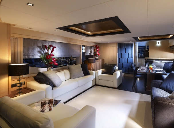 Luxury Sunseeker 88 yacht High Energy is the most prestigious vessel of her kind available for yacht charter in the South Coast of England, Channel Islands and Northern France, with a very successful charter career. Two spacious decks provide vast space for unwinding and entertaining. High Energy’s salon deck features a large open plan dining and seating area, opening into the aft cockpit, where guest can enjoy al fresco dining.