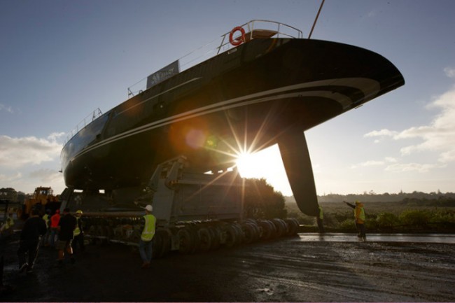 Sailing yacht Imagine 2 was floated to Auckland’s Viaduct Harbour, the following day her Southern Spars carbon fibre mast was stepped. She will begin on-the-water commissioning early next week.