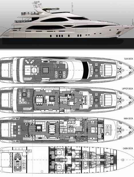 Overmarine, the Viareggio, Italy based superyacht builder have unveiled preliminary designs of their latest project, the Mangusta 148 Oceano. The Mangusta 148 Oceano is the yards first displacement trideck motor yacht.