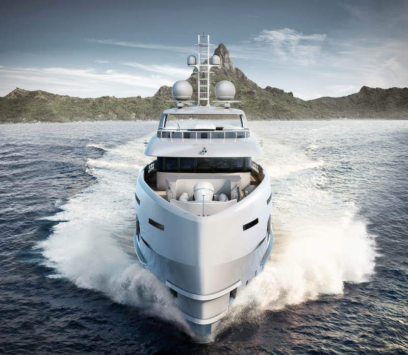Beautifully designed by Frank Laupman of Omega Architects, super yacht NOVA boasts such striking features as a plumb bow and spray rails, as well as an amazing fixed swimming platform aft with wide sweeping stairs leading to the main deck.