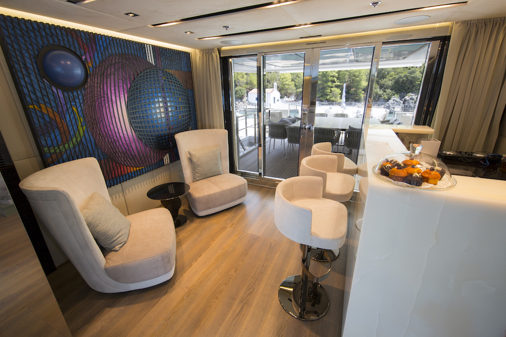 The sundeck offers a treat in the spacious Jacuzzi with swim-up bar, and whilst you and your guests lounge on the sunpads, glass balustrades ensure that you have uninterrupted views of the sparkling French Riviera, or the azure waters of the Adriatic Sea surrounding Montenegro.