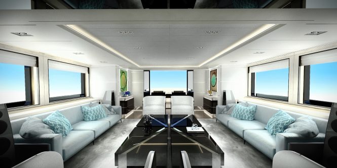 There will also be a fully functional DJ stations on the flybridge deck, a state-of-the-art AV control system in the lower deck, fully integrated retractable high volume speakers on the upper deck and state-of-the-art speaker systems thought the interior spaces, controlled by remote and touchscreen control system, just to mention a few.
