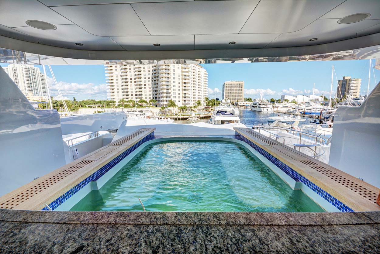 The spectacular sundeck is ready to offer your guests the ultimate outdoor relaxation experience with a generous central spa pool with swim up bar, a large collection of forward sunpads and a plush seating area and plenty of sun loungers on the aft.