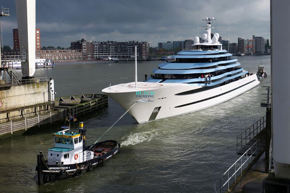 Holland’s largest yacht to date, the 110.1m: 360’11” Jubilee, left the Oceanco shipyard in Alblasserdam this morning for its first day of sea trials. Photo- © Dutch Yachting & @thenauticallady