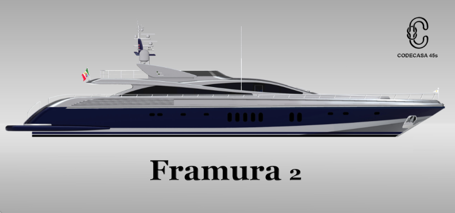 Another exciting launch has been announced from Codecasa today. The first CODECASA 45S Hull 72, named FRAMURA 2 yacht has been launched on the 5th of June 2010. This new fast motoryacht Framura 2, designed by Andre Bacigalupo continuing the famous open Codecasa 35s and Codecasa 41s lines, has a propulsion given by two waterjets KaMeWa 71 S 3 and one booster KaMeWa 63 B 3 and it is provided of three engines MTU 2400 HP each.