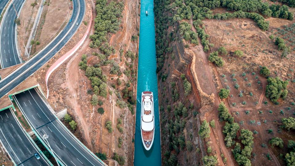 Video of O’Ptasia passing the Corinth Canal by Beyond Vision Aerial Filmmaking