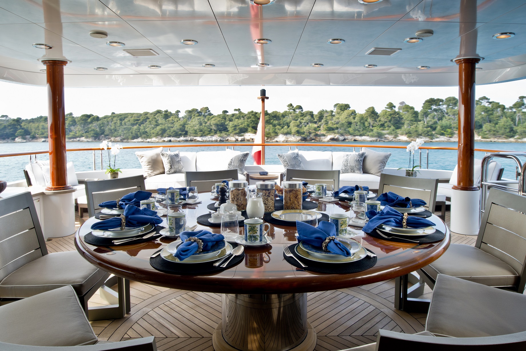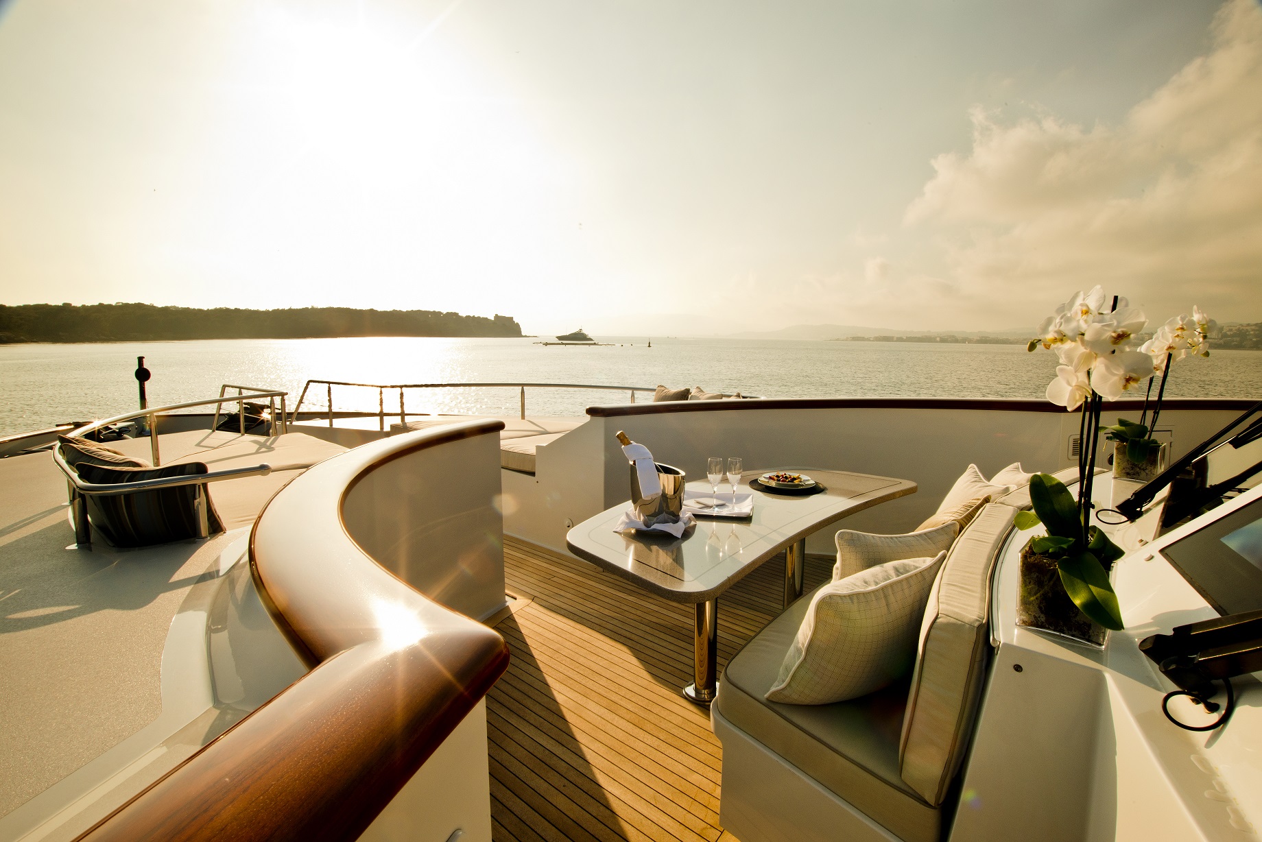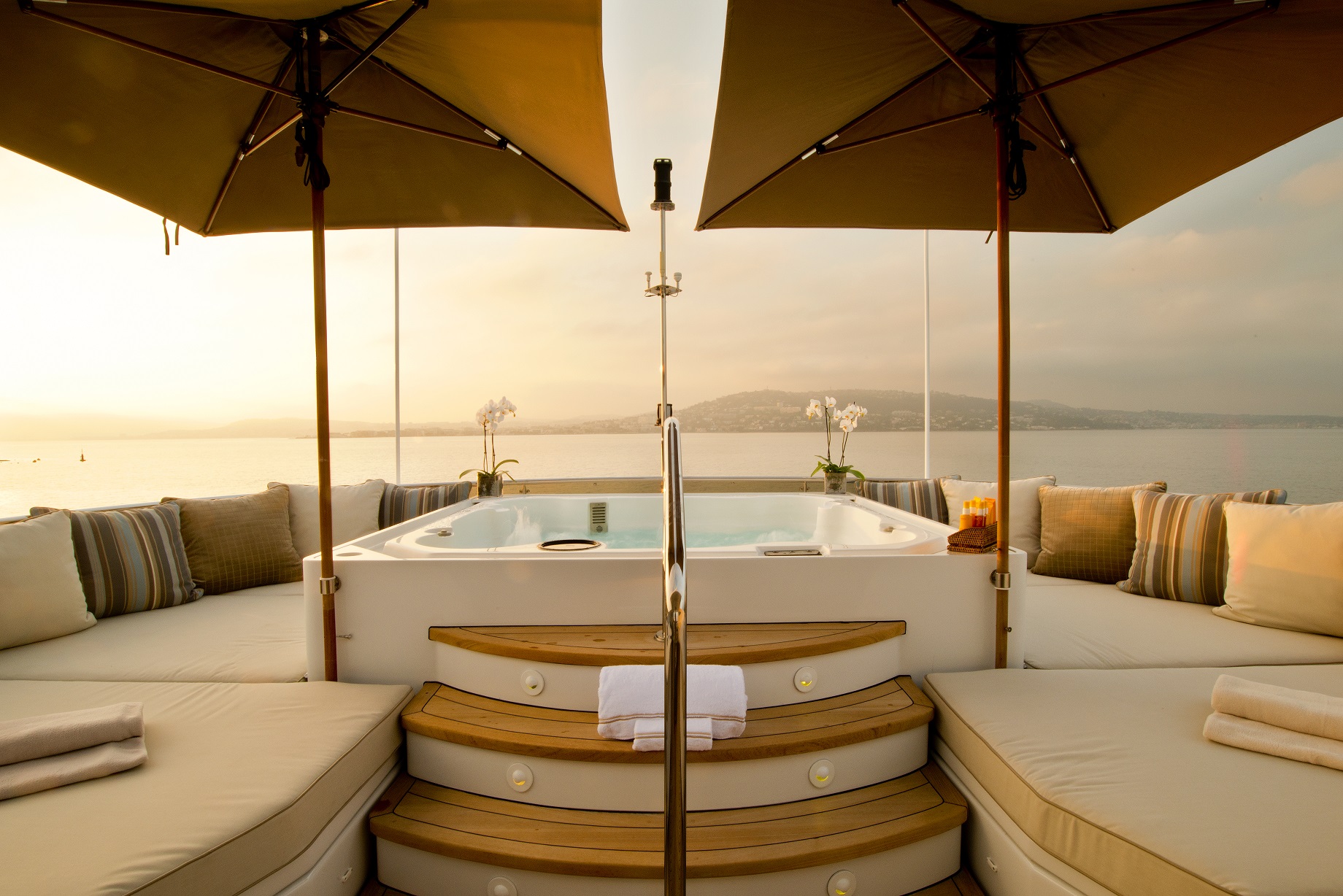 Exterior areas of the yacht provide fabulous opportunities for al fresco dining and relaxations, with a selection of chaise loungers, sun pads, wet bar, a Spa Pool and other fun amenities to make your stay on board enjoyable and relaxing.